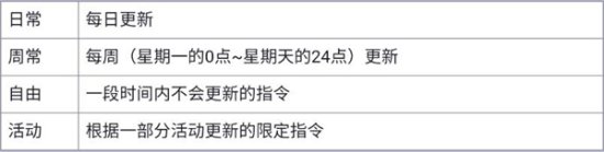 指令是游戏内的达成目标,达成指令可获得各式各样的报酬。指令有以下4种。