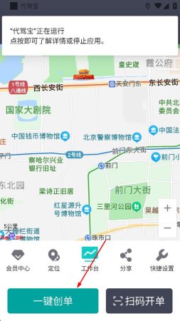 1、打开代驾宝应用,在主界面找到“一键创单”按钮,点击该按钮,进入创单页面。