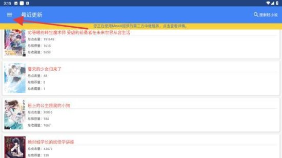 1、点击APP左上角的三条横线菜单按钮,展开侧边栏。