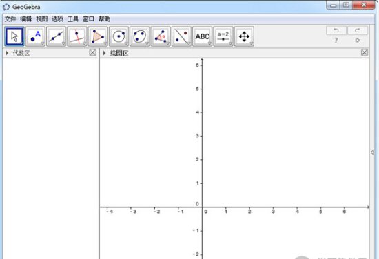 可以借助工具栏中所提供的作图工具,在几何区中使用鼠标进行几何作图。从工具栏中选择其中一种作图工具,可借助工具使用提示(在工具栏后方)来得知如何使用所选择的工具。任何在几何区中所产生的对象,在代数区中都有一个代数特征。