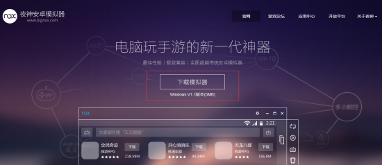 下载模拟器按钮,然后根据电脑系统选择合适版本、安装位置,点击快速安装下载,即可下载到夜神安卓模拟。