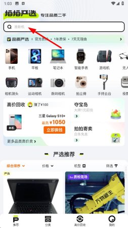 1、打开拍拍二手app,在搜索栏输入想要查看质检报告的商品的关键词。