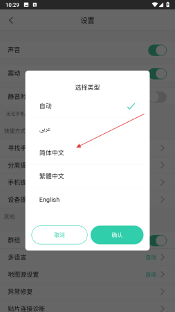 3、在设置页面里,找到多语言选项并点击,弹出选择类型的语言选择窗口。