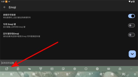 4、若想更便捷地使用表情包,还可以开启专用Emoji键,之后就能通过键盘上专用按键快速选取Emoji表情。