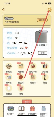 2、在我的页面中,点击右上角的齿轮状设置图标。