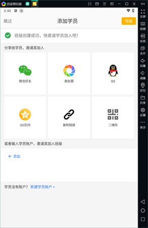 4、点击后即可成功创建班级,可以将班级链接分享到微信或qq中,邀请自己的好友加入到班级中。