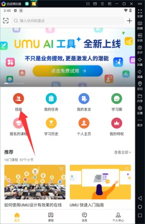 1、首先打开软件,进入软件首页后点击界面上的【班级】;