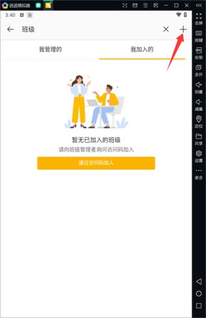 2、之后进入班级管理界面,在这里可以查看自己管理的以及加入的班级,点击右上角的【+】;