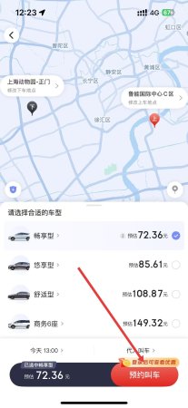4、选择合适的车型,页面会显示不同车型的预估价格,选好后点击页面下方的预约叫车按钮,即可完成预约用车操作。