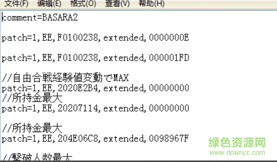 3.接下来可以在网上找到金手指代码粘贴进去,战国BASARA2日版// 后面是没使用的代码,删除了就是要使用的 (是游戏名称 也可以不要)。
