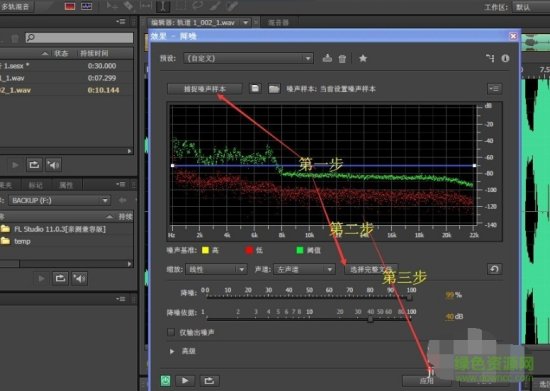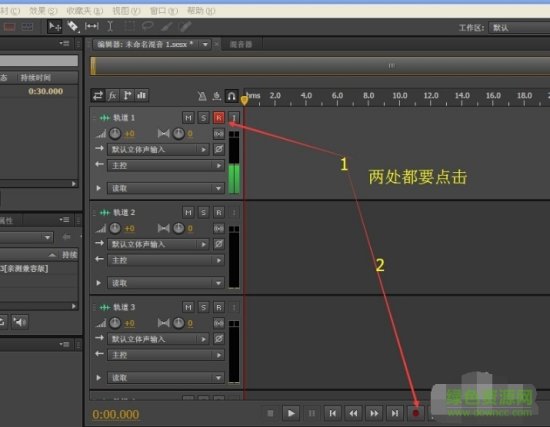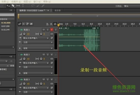 4.在多轨界面录一段音频,记住是先录一小段噪音(及先不唱,他自己录制周围的噪音就是)。