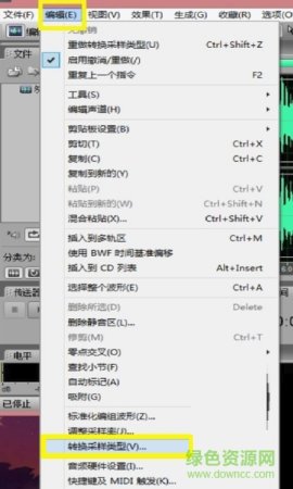 2.添加好音乐后双击该音乐进入到编辑状态,接着我们再在左上角点击“编辑”,在弹出的选项中打开“转换采样类型”功能;