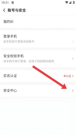 3、当我们进入账号与安全的页面后,点击安全中心的选项。
