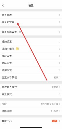 2、进入设置页面后,在设置里。账号管理的下方找到账号与安全选项,点击进入。