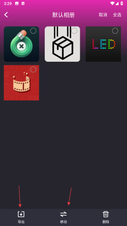 4、在管理模式下,可对相册内的图片进行导出,移动,删除等操作,按需点击底部对应功能按钮即可。
