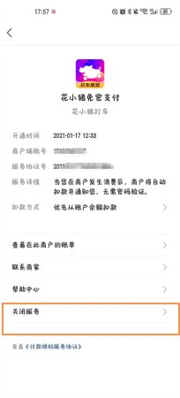 6、进入后在最下方可以找寻到关闭服务,在这里就能够对于自动免密扣费进行直接关闭了。