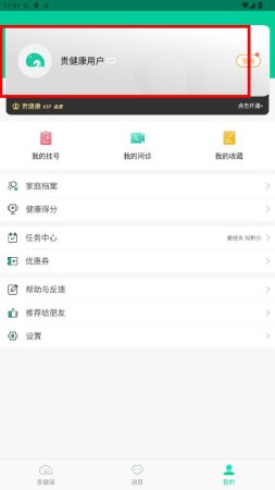 1、在贵健康app首页,点击右下角我的选项,进入个人中心界面。