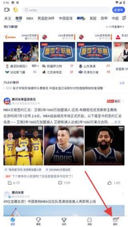 1、打开腾讯体育APP,点击底部导航栏的我的功能图标,进入到个人中心页面。