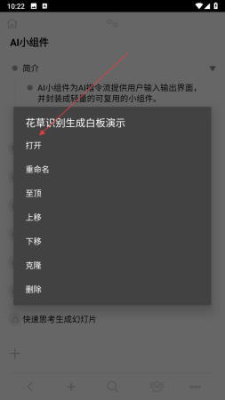 2、在AI小组件页面,选择花草识别生成白板演示功能。