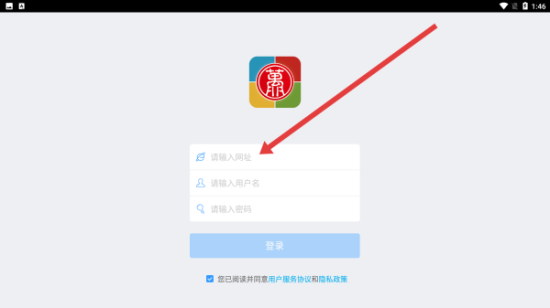 2、登录页面的网址输入框中,填写学校发送的网址,完成登录前置信息录入。