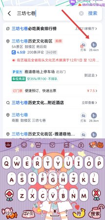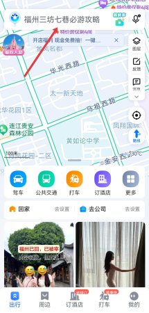 2、在搜索结果中,点击目标地点如三坊七巷历史文化街区,进入路线规划的界面。