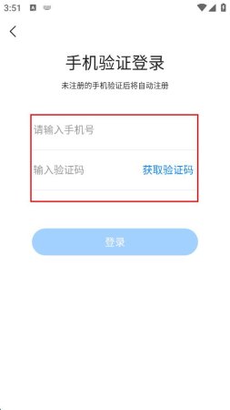 2、在APP主界面,找到“手机验证登录”按钮并点击,进入手机验证登录页面。