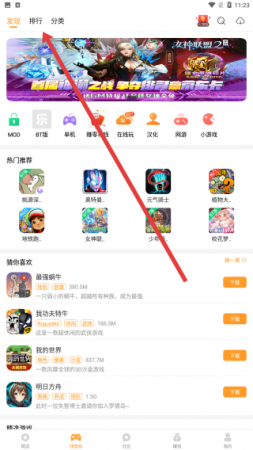 2、通过点击页面顶部排行标签,可以切换至游戏排行界面,查看各类游戏排名情况。
