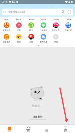 1、打开猎豹浏览器,点击底部导航栏右下角的窗口图标。