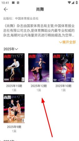 3、进入尚舞期刊页面后,选择具体的期刊期数,如点击2025年12期。