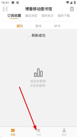 1、打开博看移动图书馆APP,点击底部导航栏中的书苑按钮,进入书苑界面。