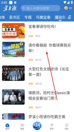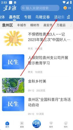 1、打开宜春潮App,点击首页上方的活动集选项。