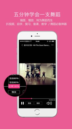 中舞网 - 舞蹈学习神器全球首发,这是目前世界上唯一一款专门为舞者和舞蹈爱好者定制,具有舞蹈视频超级慢放、镜面、本地视频播放 功能的APP,五种慢放速度,随你调节。随时随地,只要打开手机中舞网APP,就可以学习任何一支你想学习的舞蹈视频,学舞从此变得简单。
