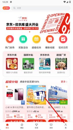 1、打开京粉app进入首页,点击底部导航栏最右侧我选项,进入个人页面。