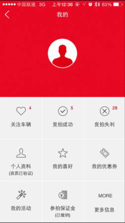 “我的”-查看关注车辆、优惠券、资质认证、参拍保证金审核等信息