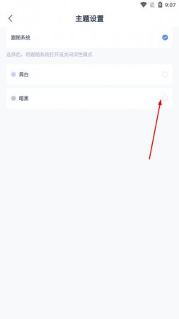 4、找到暗黑模式,点击圆圈进行选择,即可开启夜间模式。