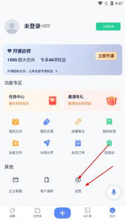1、打开有道云笔记App,进入个人页面,点击设置选项。
