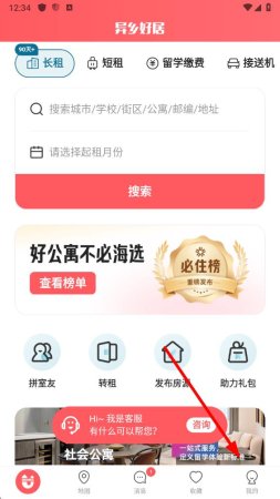 异乡好居是一款专门针对留学生打造的租、售房的服务平台,