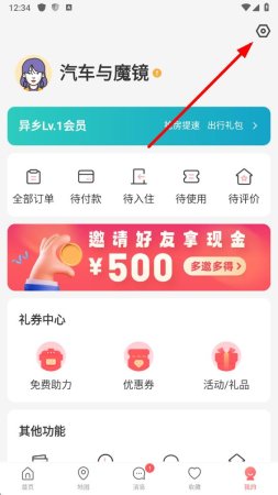 2、在个人界面的右上角,点击设置图标,进入设置页面。