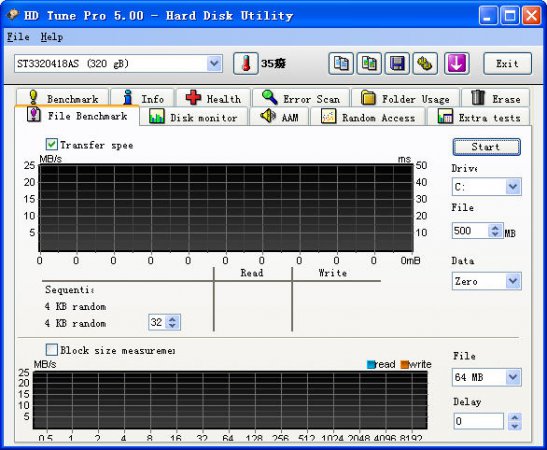 HD Tune是一款小巧易用的硬盘工具软件,其主要功能有硬盘传输速率检测,健康状态检测,温度检测及磁盘表面扫描等。另外,还能检测出硬盘的固件版本、序列号、容量、缓存大小以及当前的Ultra DMA模式等。虽然这些功能其它软件也有,但难能可贵的是此软件把所有这些功能积于一身,而且非常小巧,速度又快,更重要的是它是免费软件,可自由使用。