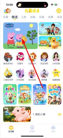 1、在【宝宝看】页面点击想要下载的动画片,如【小猪佩奇】。