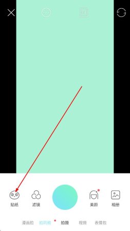 2、进入拍摄界面,点击底部贴纸按钮,打开贴纸选择栏,浏览热门、最新等分类,挑选喜欢的贴纸样式。