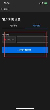 3、在对应输入框中填写手机号码,填写完成后点击使用手机继续。