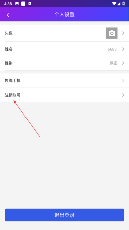 3、在个人设置界面中,找到并点击注销账号选项。