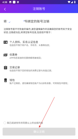 4、进入注销账号页面后,仔细阅读注销须知,点击确认注销按钮。