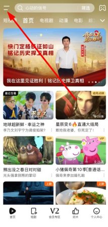 1、打开腾讯视频App,点击左上角的三条横线图标。