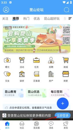 2、进入昆山论坛首页,点击立即登录选项,进入登录相关页面。