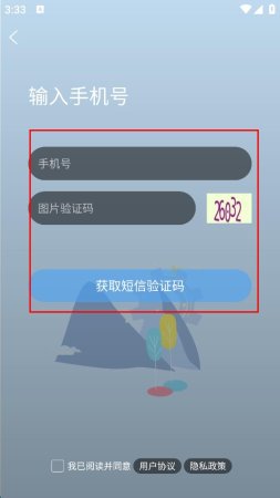 4、在输入手机号页面输入手机号码和图片验证码,点击获取短信验证码,后续完成注册流程。
