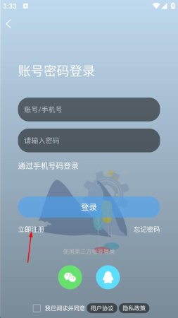 3、在登录相关页面点击立即注册选项,进入输入手机号页面。