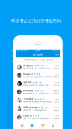 同时,程序员客栈汇聚了全球优秀华人程序员,集中展示程序员的个人履历,作品,技能以及专业社区影响力,方便您寻找到技术员工甚至未来的技术合伙人。