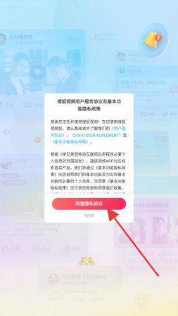 1、打开搜狐视频APP,进入时会弹出用户服务协议以及隐私政策,点击同意隐私协议的按钮。